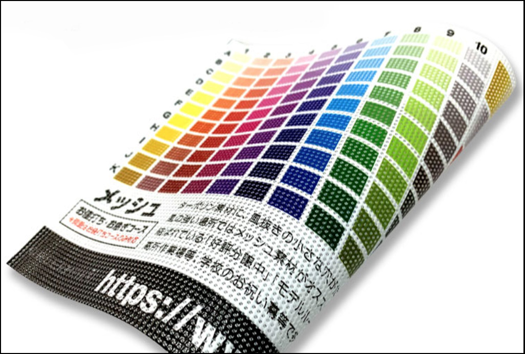 メッシュは細かい網目になっているので風による破れに強く、遠方からの視認を目的とした大型の幕や、 高い所での使用に適しています。屋内外に使用でき長期常設向けです。
