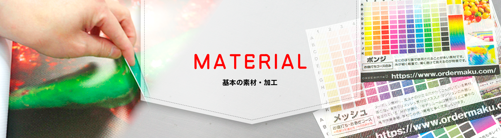 オーダー幕.comでは、横断幕の素材として『ターポリン』『メッシュ』『トロマット(布)』の3種類、さらに『のぼり』を加えて計4種類の素材をご用意しております。 以下に印刷面や対応コースごとの違いなどについてまとめましたので、素材選びの参考にご覧ください。