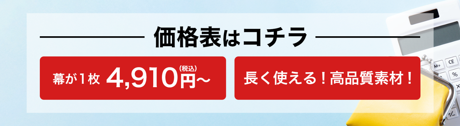 | 〜450cm | ¥14,570 | ¥17,530 | ¥18,450 | ¥22,900 | ¥26,650 | ¥30,340 | ¥32,340 |