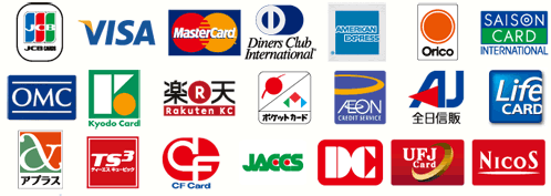 以下のクレジットカードがご利用頂けます。一括払い、リボルビング払い、分割払い、ボーナス一括払いが可能です。